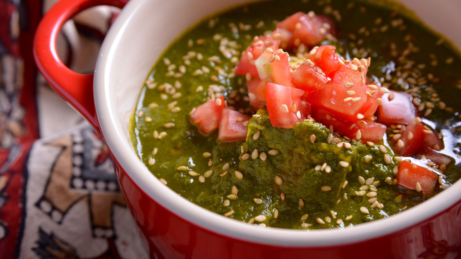 Palak paneer es un popular plato vegetariano de la gastronomía de la India elaborado con espinacas blanqueadas y queso paneer en una salsa de curry.