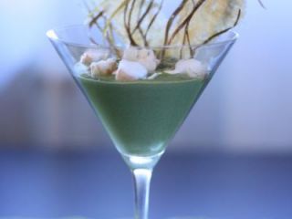 Crema de espinacas y yogur danone con langostino y crujientes