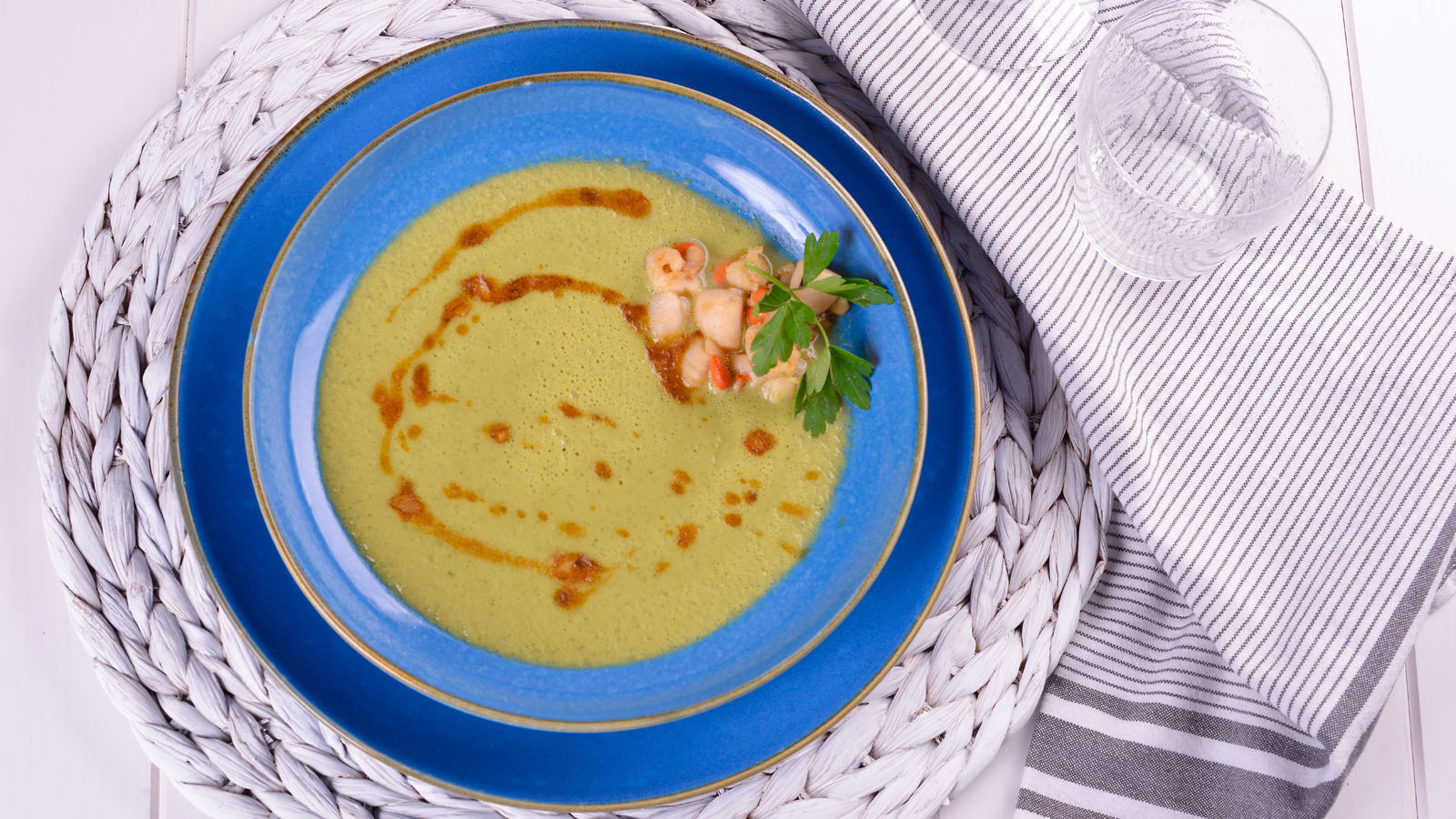 En el capítulo 414 del programa de televisión Los 22 minutos de Julius T2, nuestro cocinero Julius prepara la receta de Crema de guisantes a la menta con zamburiñas.