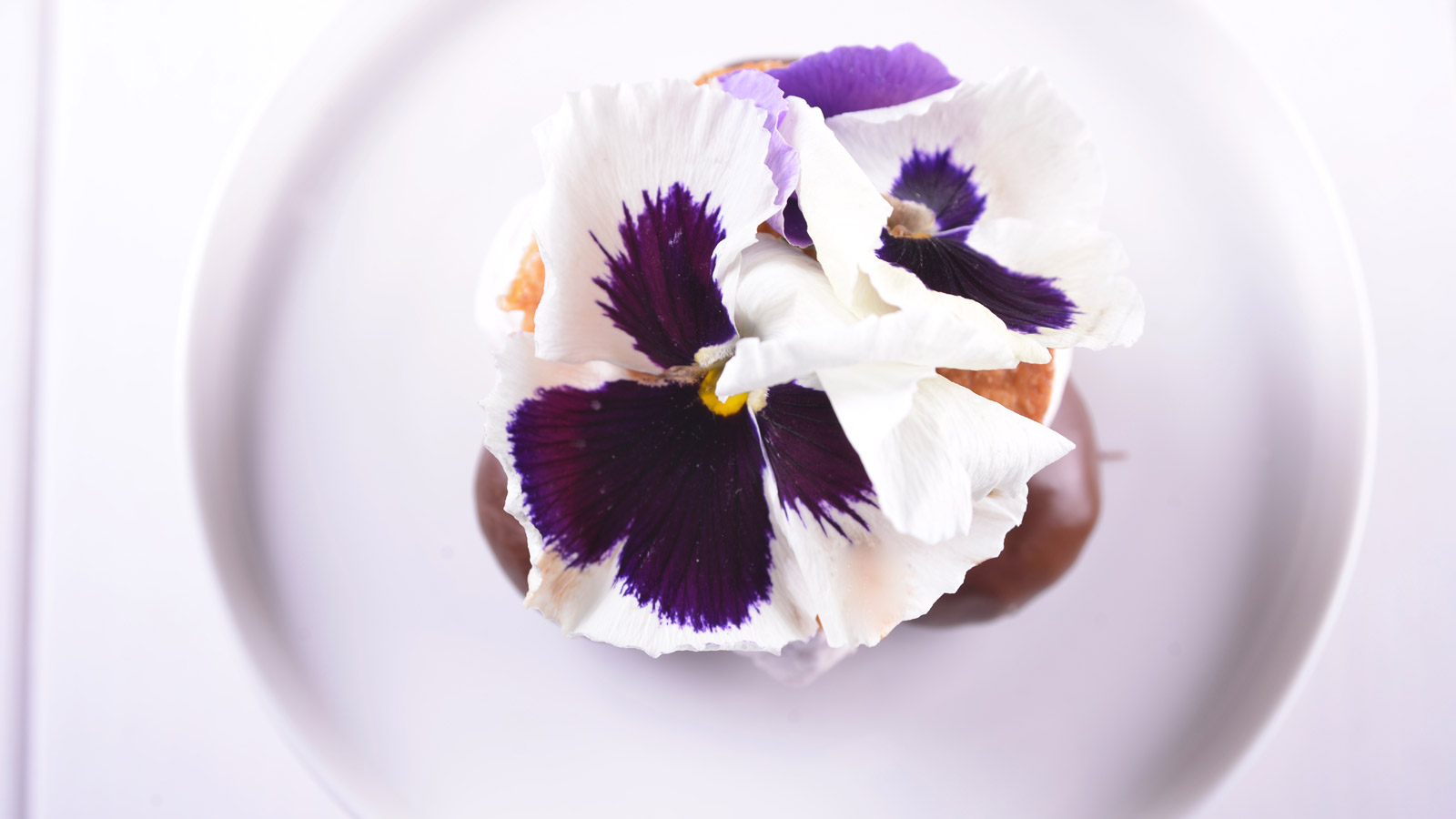 Decoramos con unas flores blancas. También se le pueden añadir unas hojas de menta fresca. Y ha tenemos nuestro postre listo para servir.