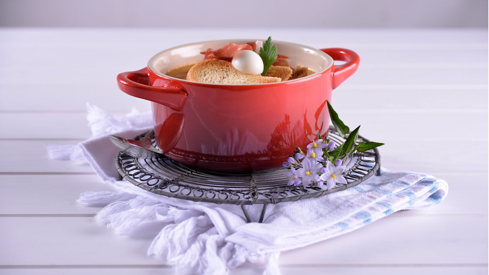 En la misma cazuela ponemos ese aceite junto con el caldo y el pan y lo cocinamos hasta obtener una crema.
