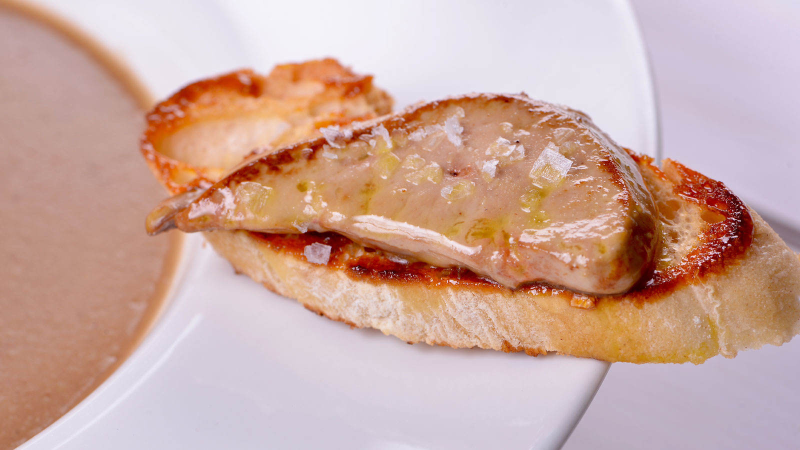 Crema de lentejas con tostinos caramelizados y foie