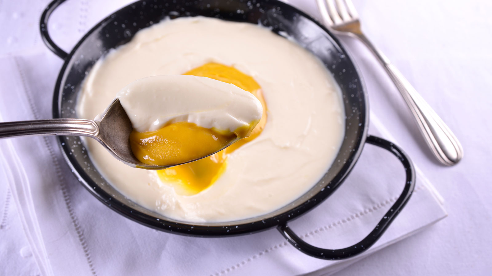 En este episodio de Cocina de familia Elena Aymerich cocina Crema de limón con helado de mango. Se trata de un trampantojo, que es una ilusión óptica con que se engaña a un comensal haciéndole creer que ve algo distinto a lo que en realidad saborea, como esta receta que parece un huevo frito con patatas, pero en realidad es un plato dulce de crema de limón con helado. Para que la crema de limón esté lista tenemos que hacerla la víspera para que cuaje.