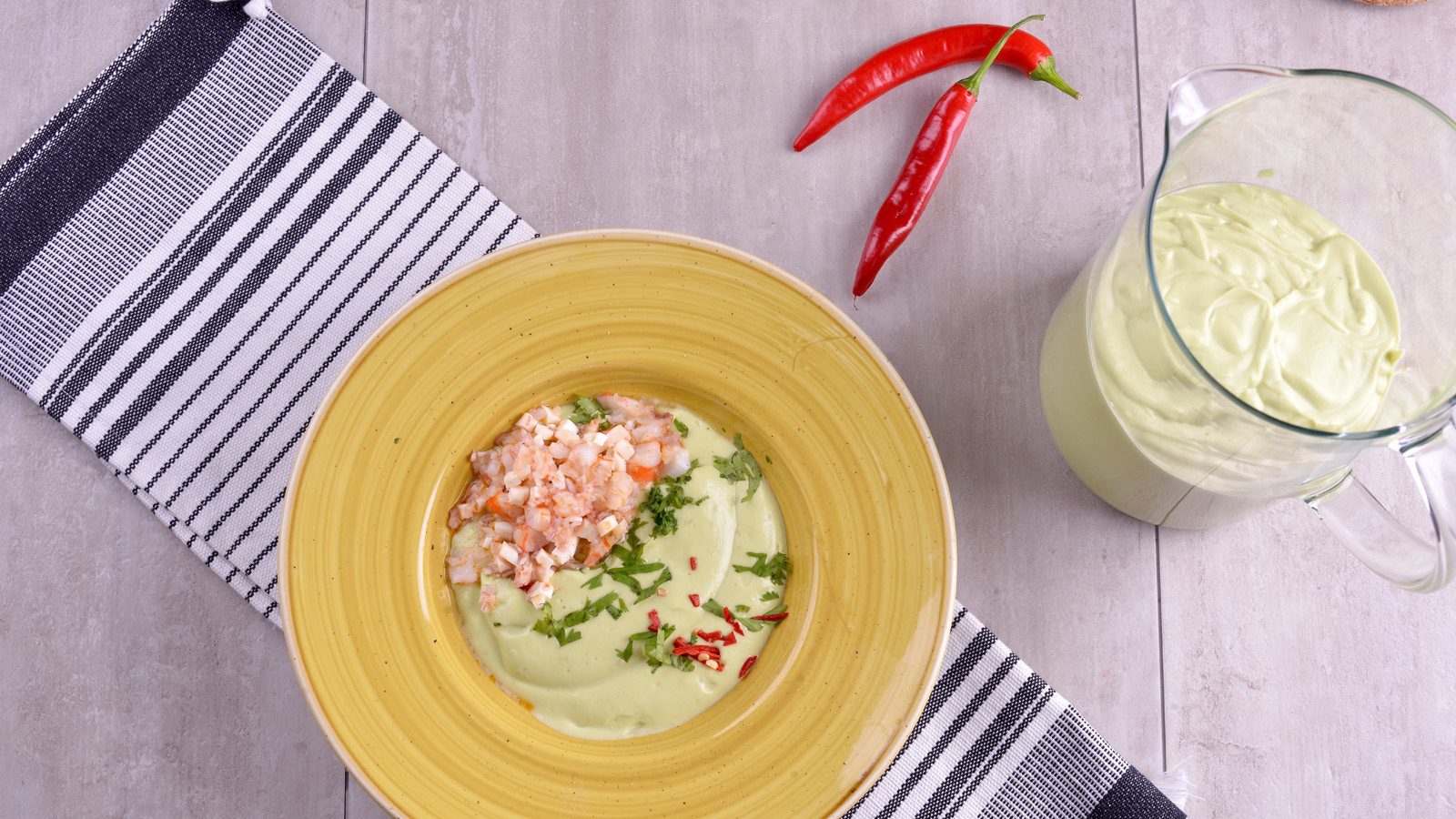 Crema fría de aguacate con picadillo especial