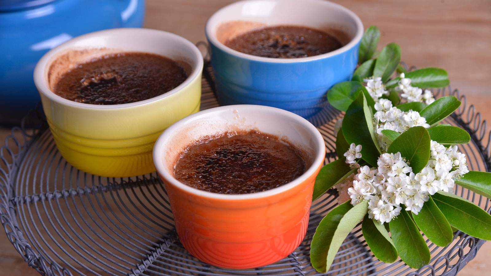 Con ayuda de un cazo, rellenamos unos ramequines o unos recipientes aptos para horno con la mezcla obtenida, dejando un dedo por debajo del borde. Horneamos a 100ºC durante 60 minutos.
