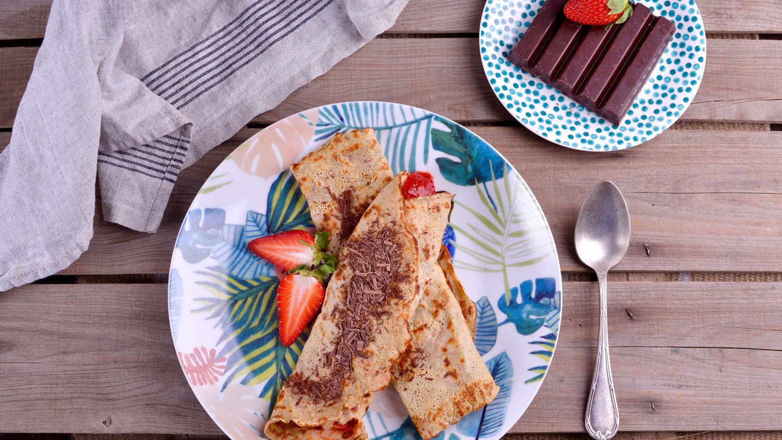 En el capítulo 7 del programa de televisión La cocina de la felicidad, Marta Simonet prepara la receta de Crepes de avena con fresones.