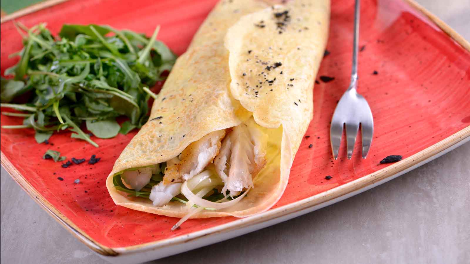 Crepes de lubina al champán