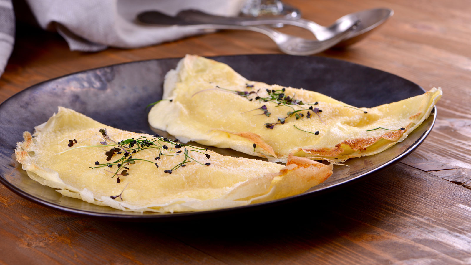Crepes rellenos de soufflé de queso
