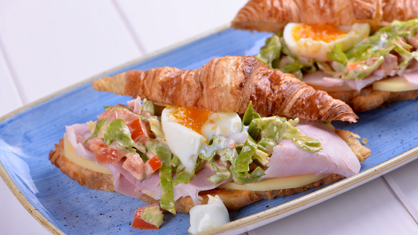 Partimos el huevo y colocamos una mitad en cada croissant.