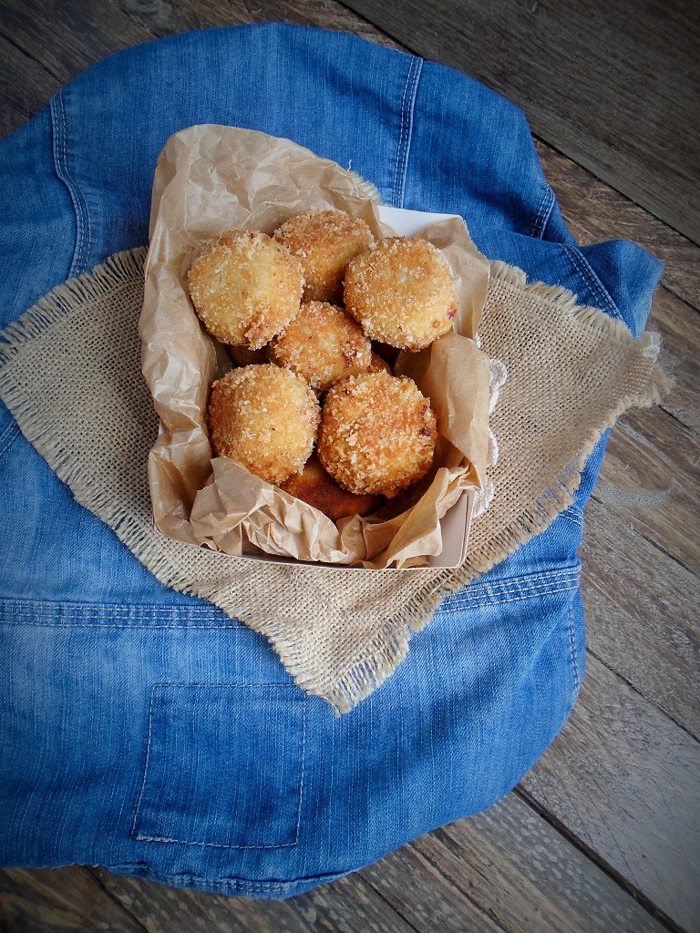Ponemos a calentar una sartén con abundante aceite de girasol, incorporamos un ajo y cuando este comience a calentarse el aceite está caliente, vamos friendo las bolitas en tandas pequeñas para que no baje la temperatura del aceite (media-alta),