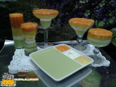 •El postre consiste en una primera capa de gelatina de aguacate y queso.
