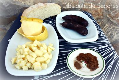 Sacamos la morcilla de la tripa y calentamos en una sartén, deshaciéndola bien.