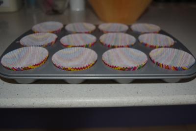 5º introducir esta mezcla en capsulas de cupcake sin llenarlas mas de 2/3 partes,y la introducimos en el horno durante 20-25min :la cocion dependera del horno.podemos comprobarlo con un palillo si sale limpio