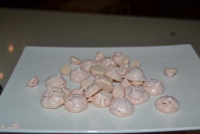 2º verter en una manga pastelera y en un papel de hornear ir formando montoncitos,introducirlos en el horno precalentado a 150º durante 15 min,pasado ese tiempo bajar la temperatura a 100º durante 50min,pasado ese tiempo dejarlos enfriar en el horno apagado