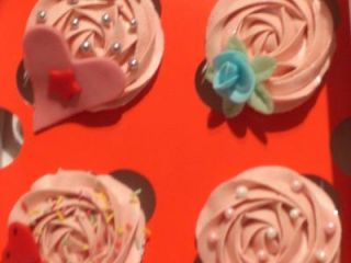 Rellenamos una manga pastelera con la crema de mantequilla y le ponemos la boquilla 1M de wilton. Apretamos firmemente la manga en el centro del cupcake y giramos en el sentido de las agujas del reloj. Por ultimo estiraremos fondant y con los cortadores elegidos haremos figuritas,que dejaremos secar antes de poner en la crema. Tambien podemos poner bolitas,purpurina comestible...