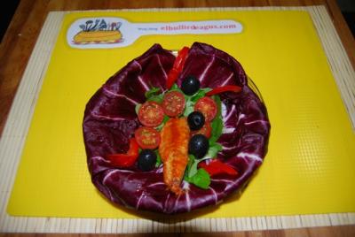 •Se coloca en un bol, las hojas grandes de la lechuga, forrándolo.
