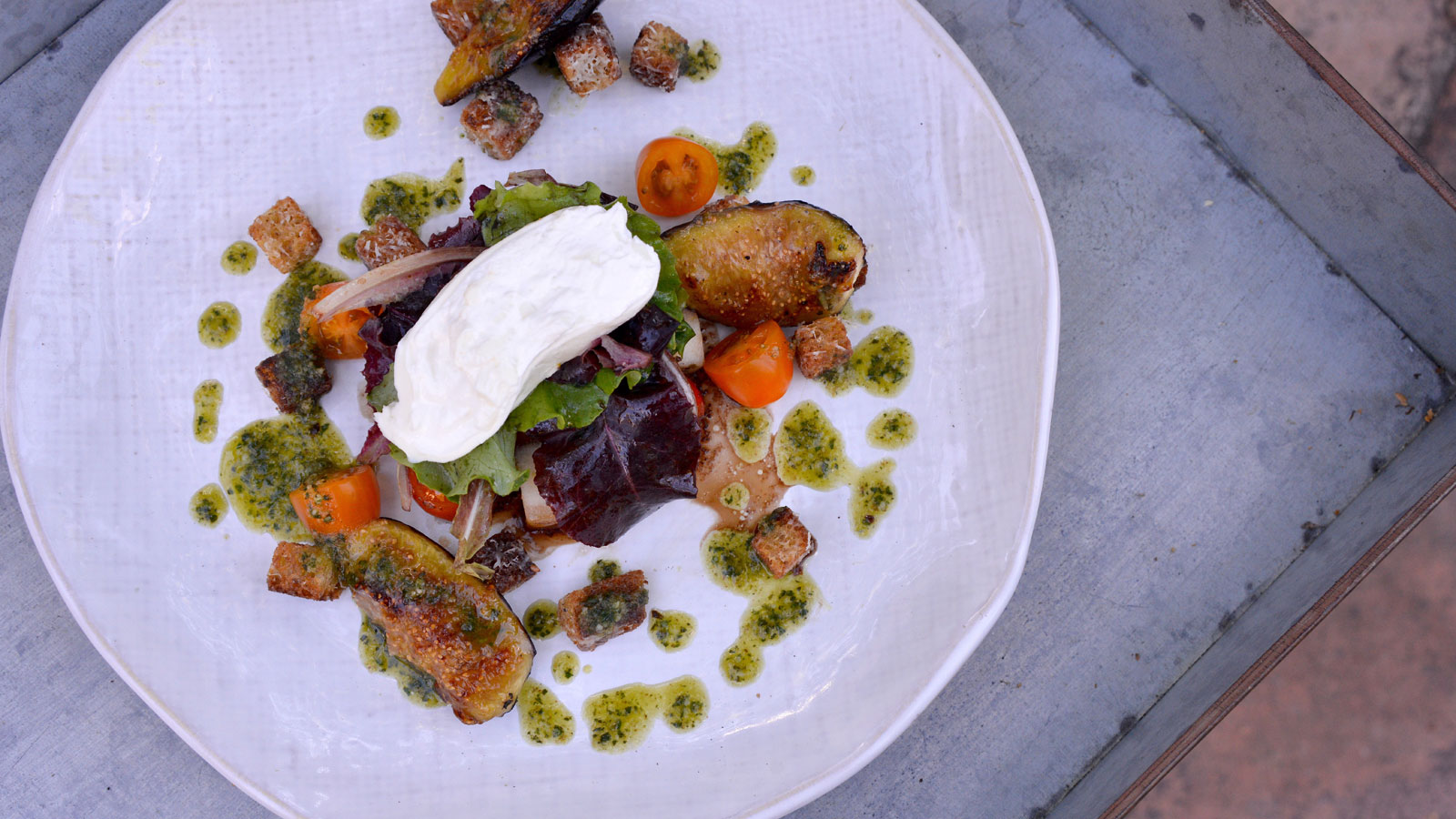 En el episodio 9 del programa Cenas al aire libre, el cocinero Pablo Vicari prepara una receta de Ensalada de burrata, tomates asados y pesto para una cena a contrarreloj.