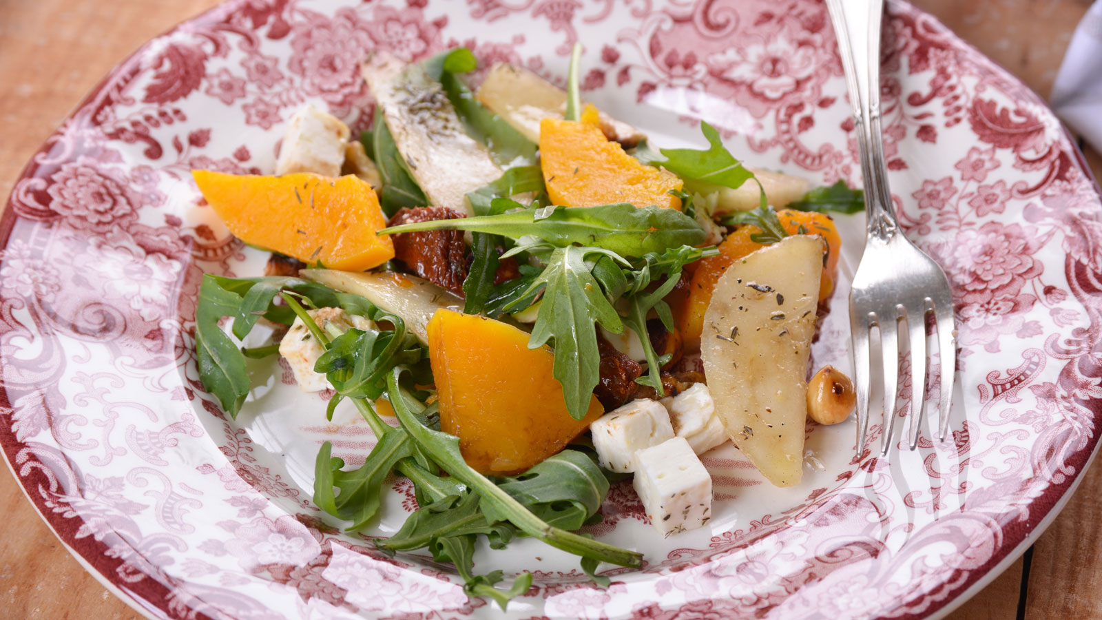 Ensalada de calabaza, pera y queso feta