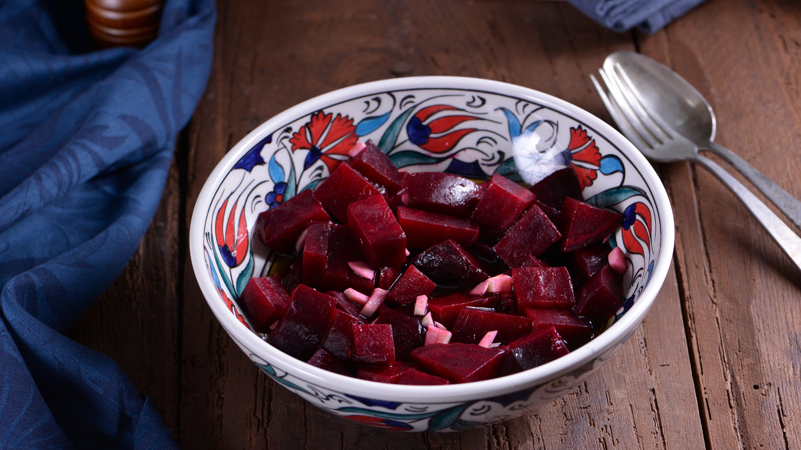 En el capítulo 9 del programa de televisión Cocina turca, Tayfun Altinbas prepara la receta de Ensalada de encurtido de remolacha rápida (Pancar turşusu).