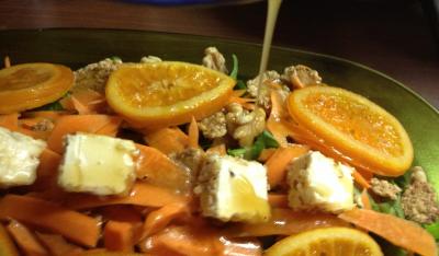 ensalada de espinacas con naranja confitada