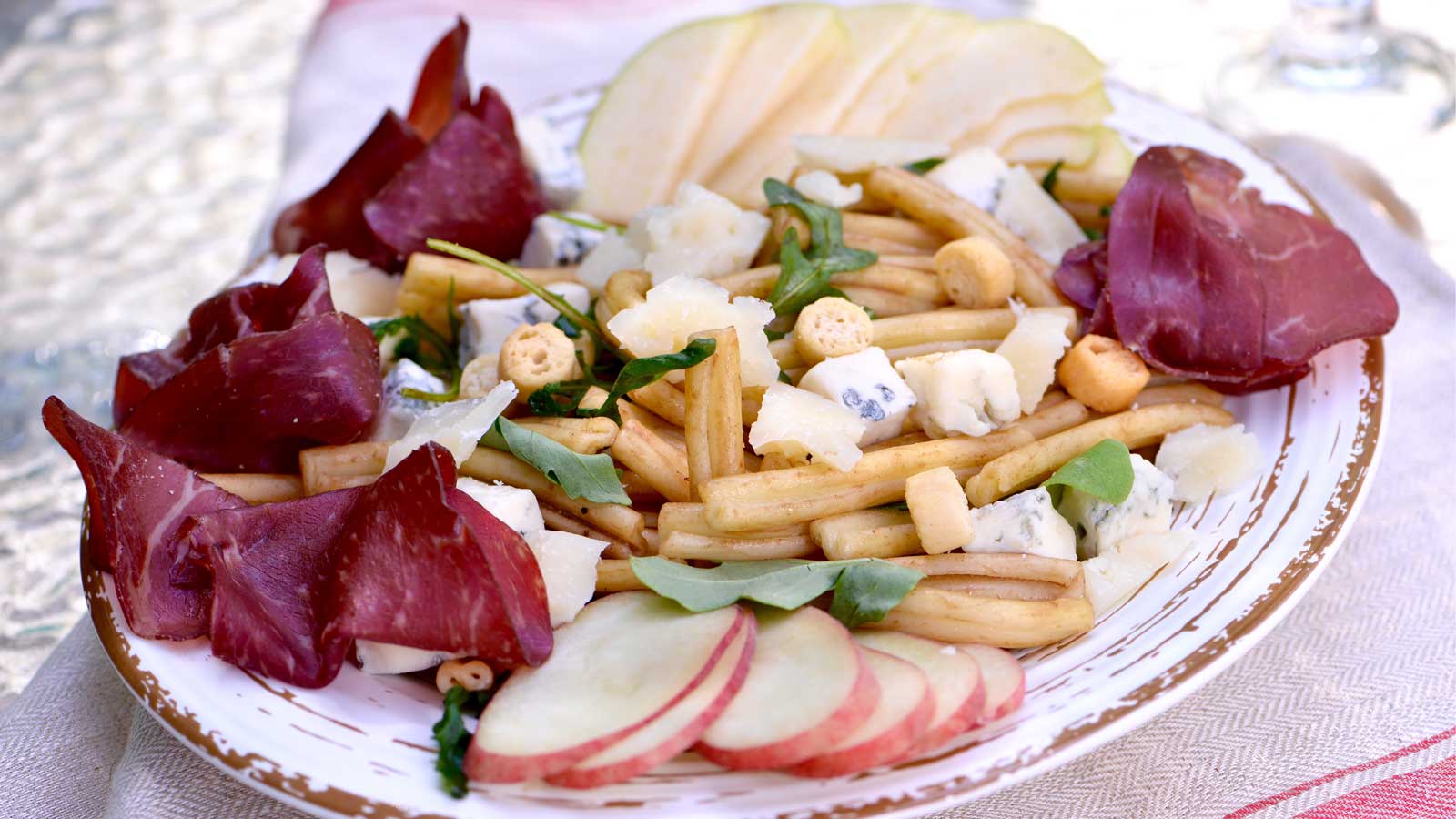 Ponemos también la bresaola en forma de pañuelos y terminamos con la salsa.