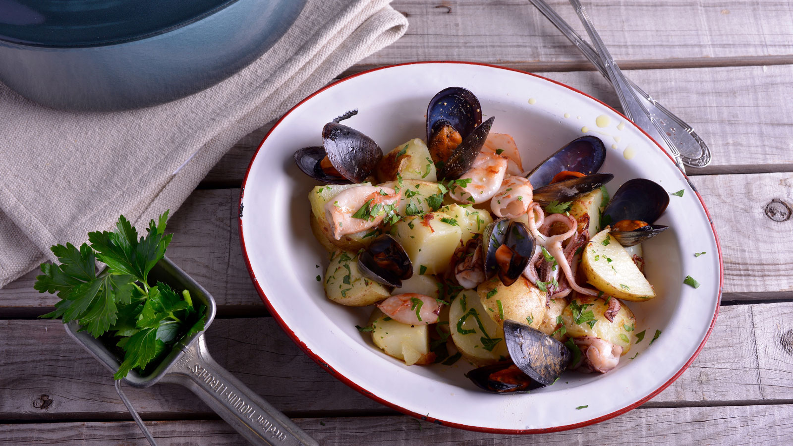 Ensalada de patatas con mejillones y chipirones