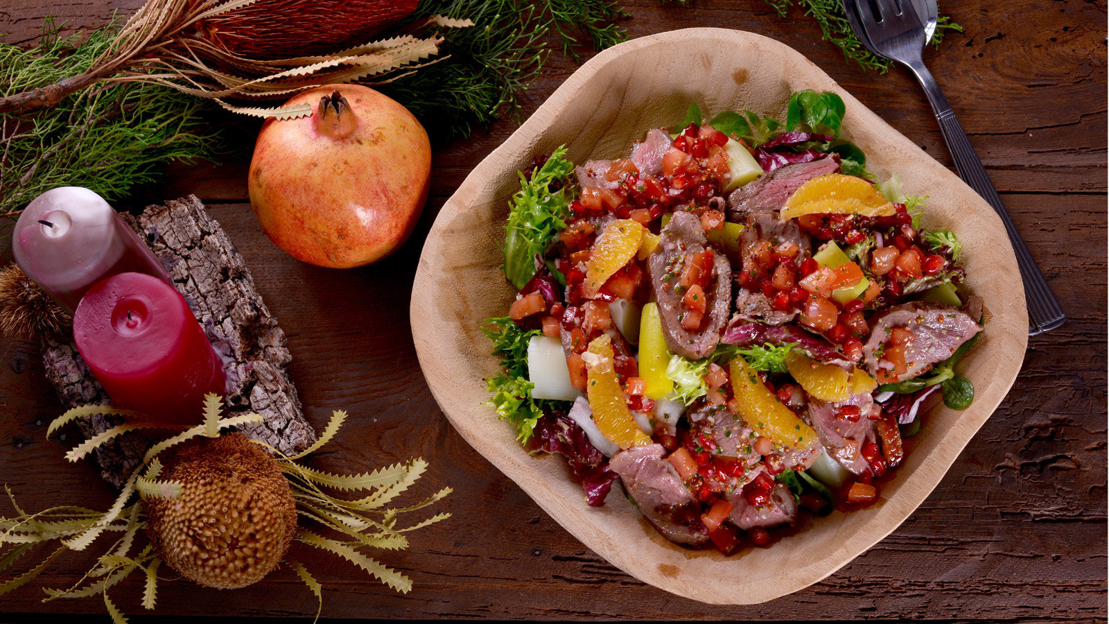 Ensalada de puerros y magret de pato