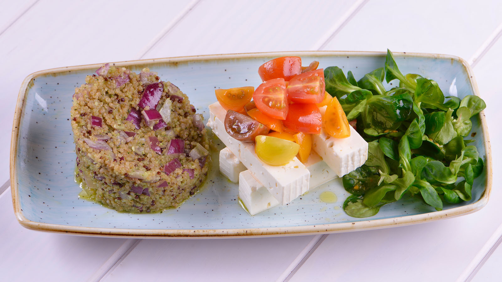 En el capítulo 414 del programa de televisión Los 22 minutos de Julius T2, nuestro cocinero Julius prepara la receta de Ensalada de quinoa, feta y tomate.