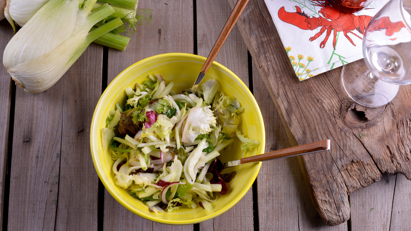 En el capítulo 10 del programa de televisión Cocina nórdica, Nina Olsson prepara la receta de Ensalada nórdica de hinojo.