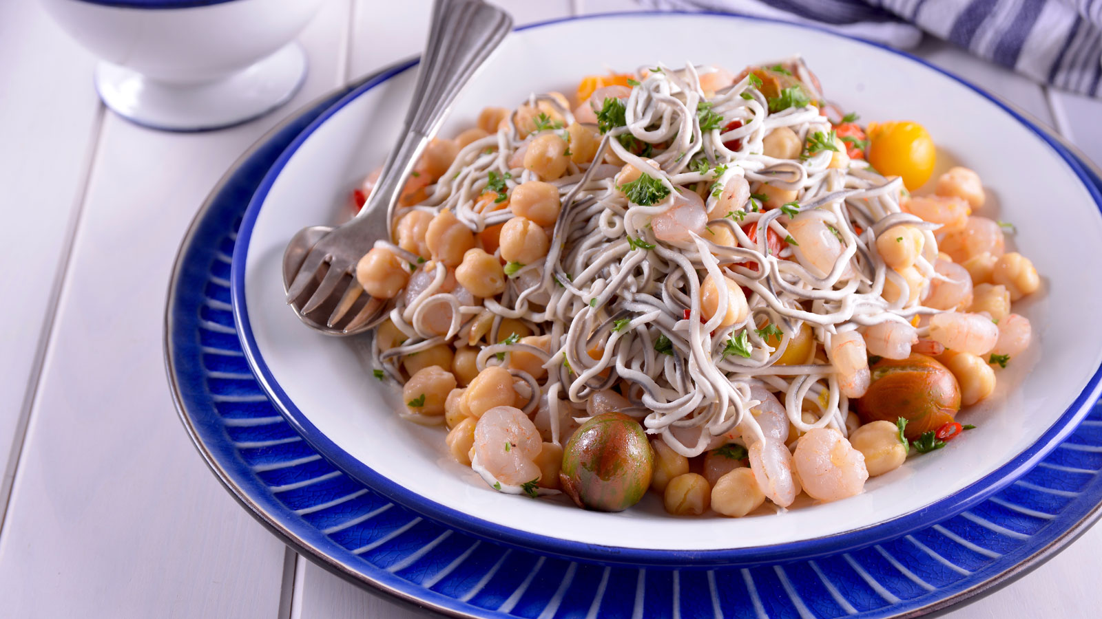 Ensalada tibia de falsas angulas y garbanzos