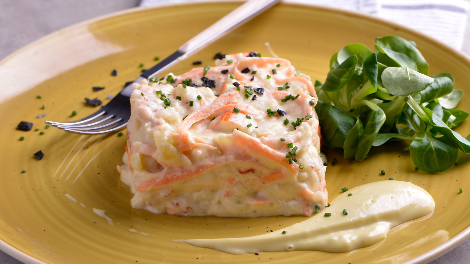 En el capítulo 436 del programa de televisión Los 22 minutos de Julius T2, nuestro cocinero Julius prepara la receta de Ensaladilla de patatas y gambas.