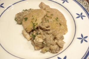 Disponer los filetes en una fuente y condimentar con la crema de setas.