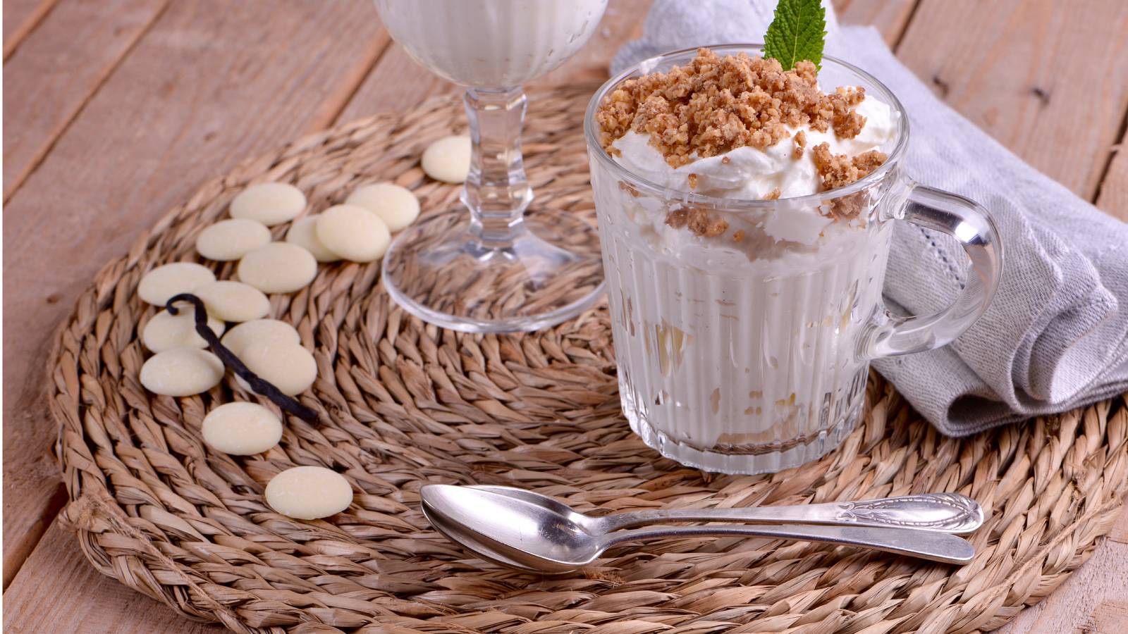 En el capítulo 69 del programa de televisión Sabor de Hogar T4, Juan Pozuelo prepara la receta de Espuma de vainilla con crujiente.