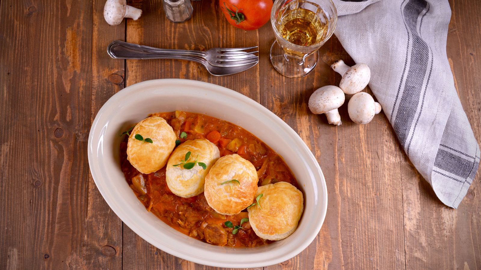 Estofado de pavo con bollitos de hojaldre