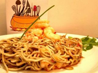 - Empezaremos por pelar los gambones y reservarlos, las cabezas las sofreiremos apretándolas con una espátula para que suelten su jugo, en una cazuela con aceite de oliva, cuando se vayan tostando retiraremos parte del aceite que usaremos para el sucedáneo de angulas y añadiremos un poco de vino blanco que dejaremos evaporar el alcohol y después agua y una hoja de laurel, salpimentaremos, y dejaremos cocer 15 minutos.