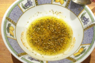 En un bol, poner 3 cucharadas de aceite, el zumo de medio limón (tres partes de aceite por una de limón) la hierbas y un poco de guindilla molida. Mezclar.