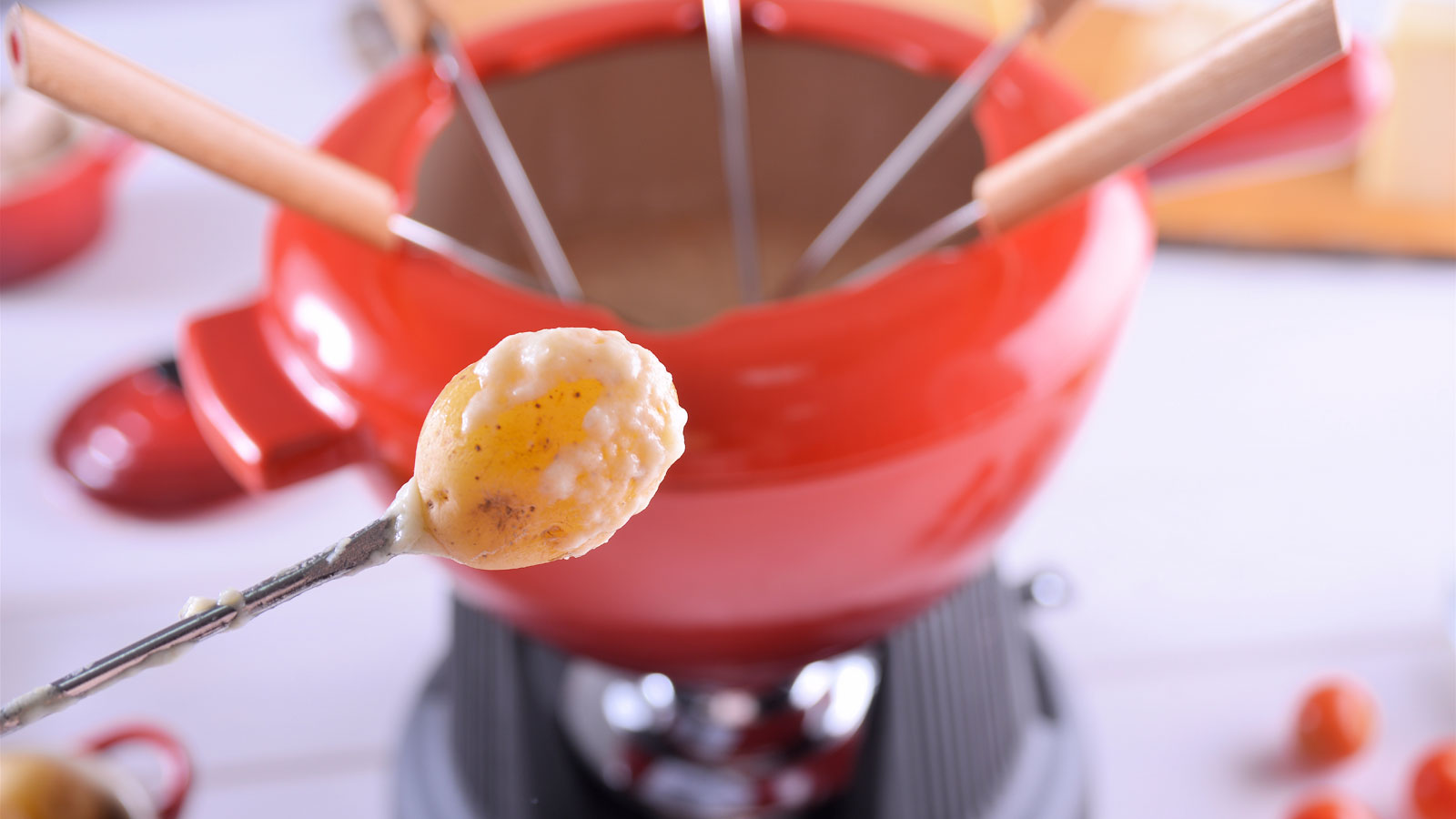 Servimos la fondue con pimienta, perejil y acompañamos con el resto de ingredientes.