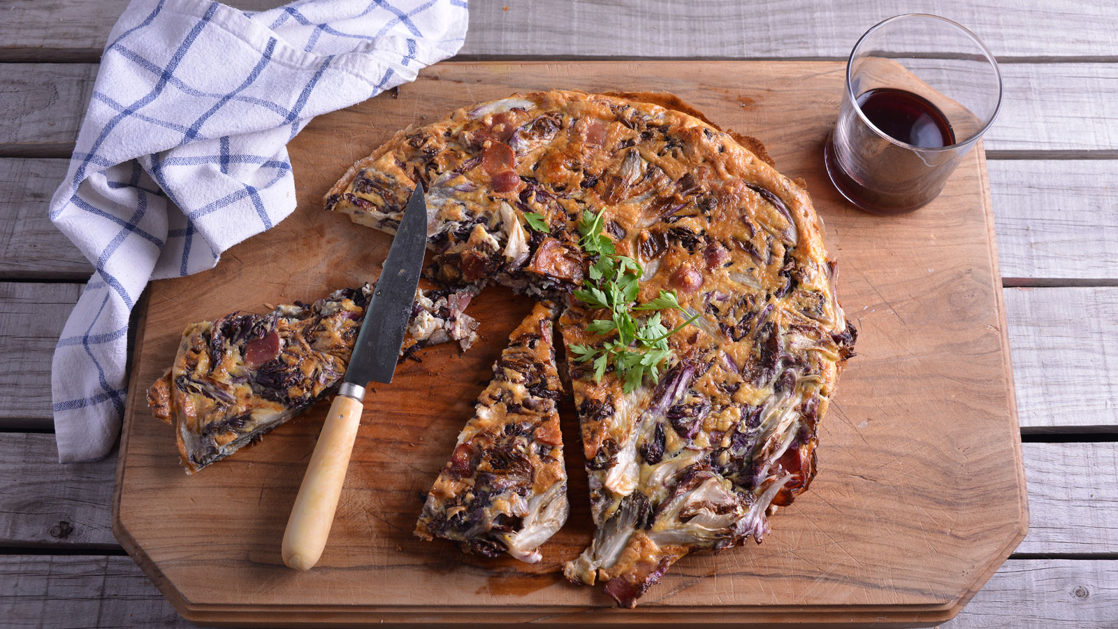 Frittata al horno de radicchio, bacon y queso grana padano