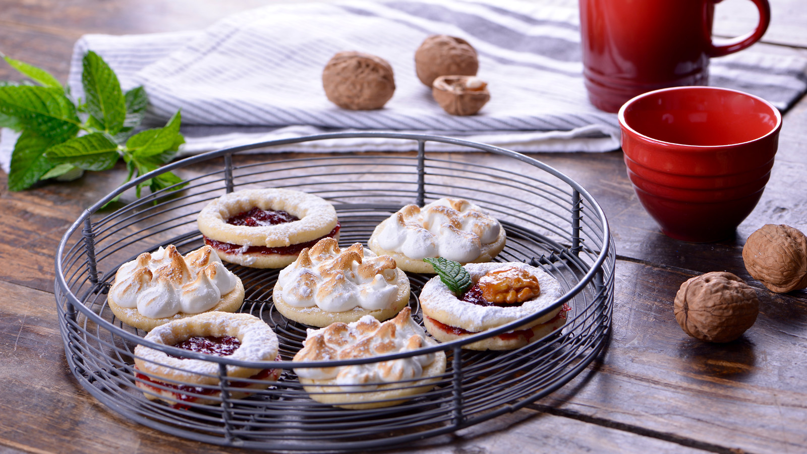 Dejamos enfriar y rellenamos con mermelada de fresas o merengue.