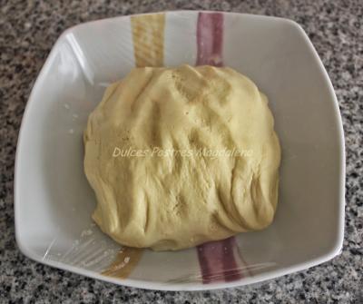 Transcurrido ese tiempo, retirar del frigorífico y estirar la masa sobre la mesa de trabajo con la ayudar de un rodillo.