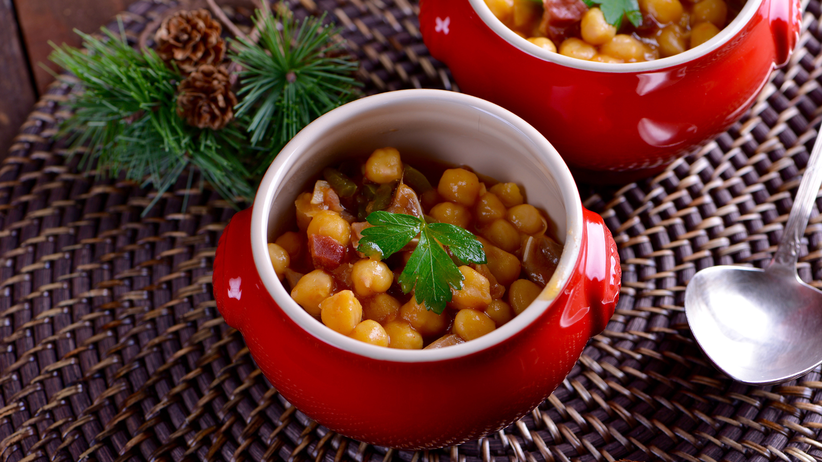 En el capítulo 644 del programa de televisión Cocinamos contigo T5, Sergio Fernández prepara la receta de Garbanzos con oreja de cerdo.