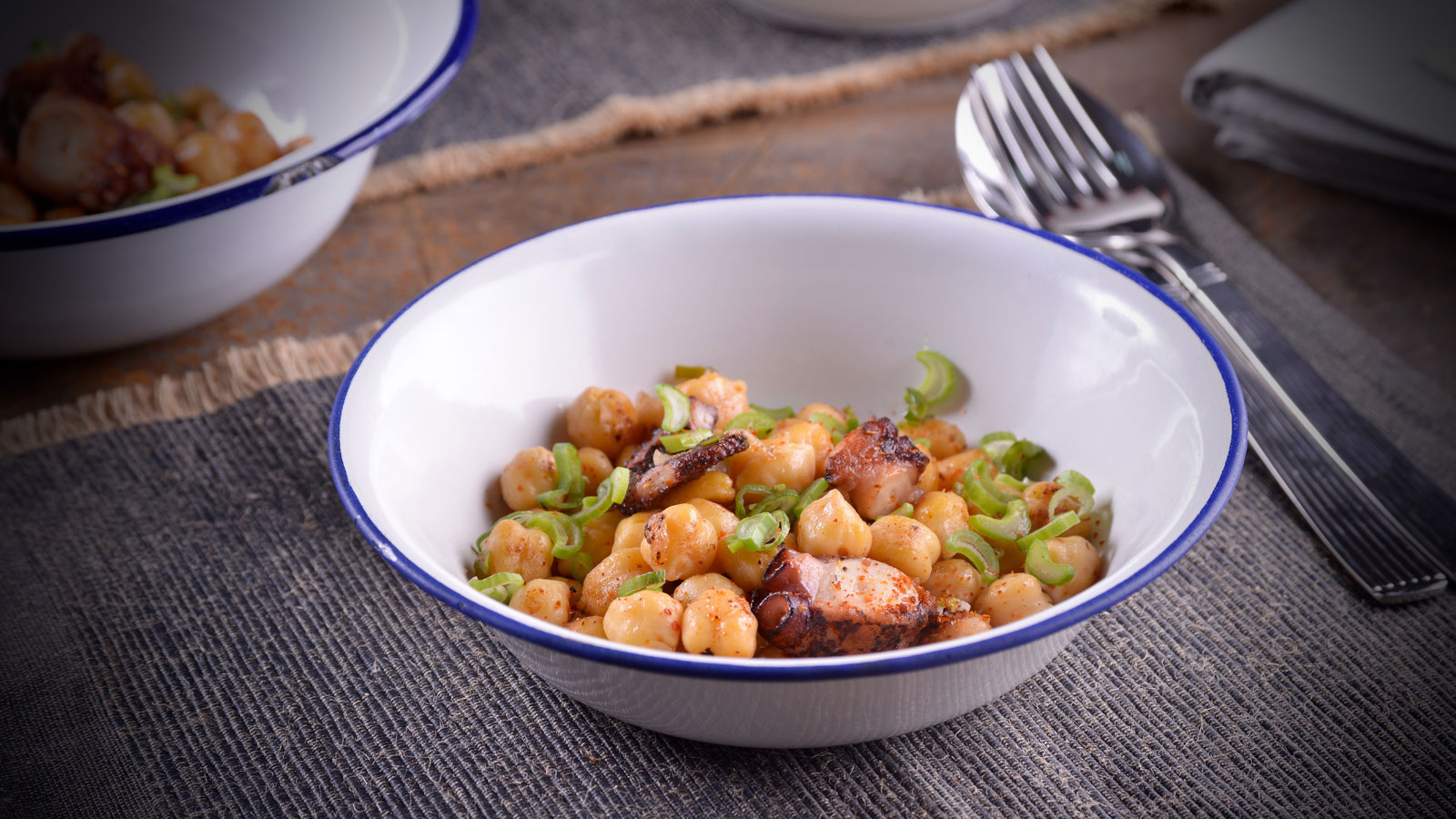 Garbanzos salteados con pulpo
