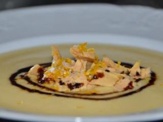Gazpacho de manzana Golden con foie fresco y caramelo balsámico de Módena
