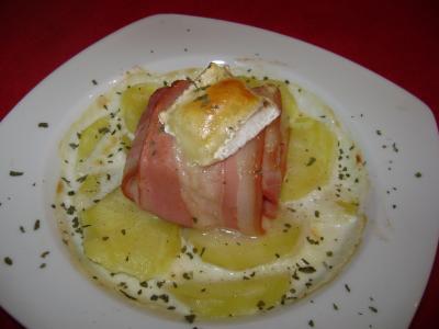 Gratin Dauphinois con Camembert envuelto en Bacon (Chamipon Cheese)
