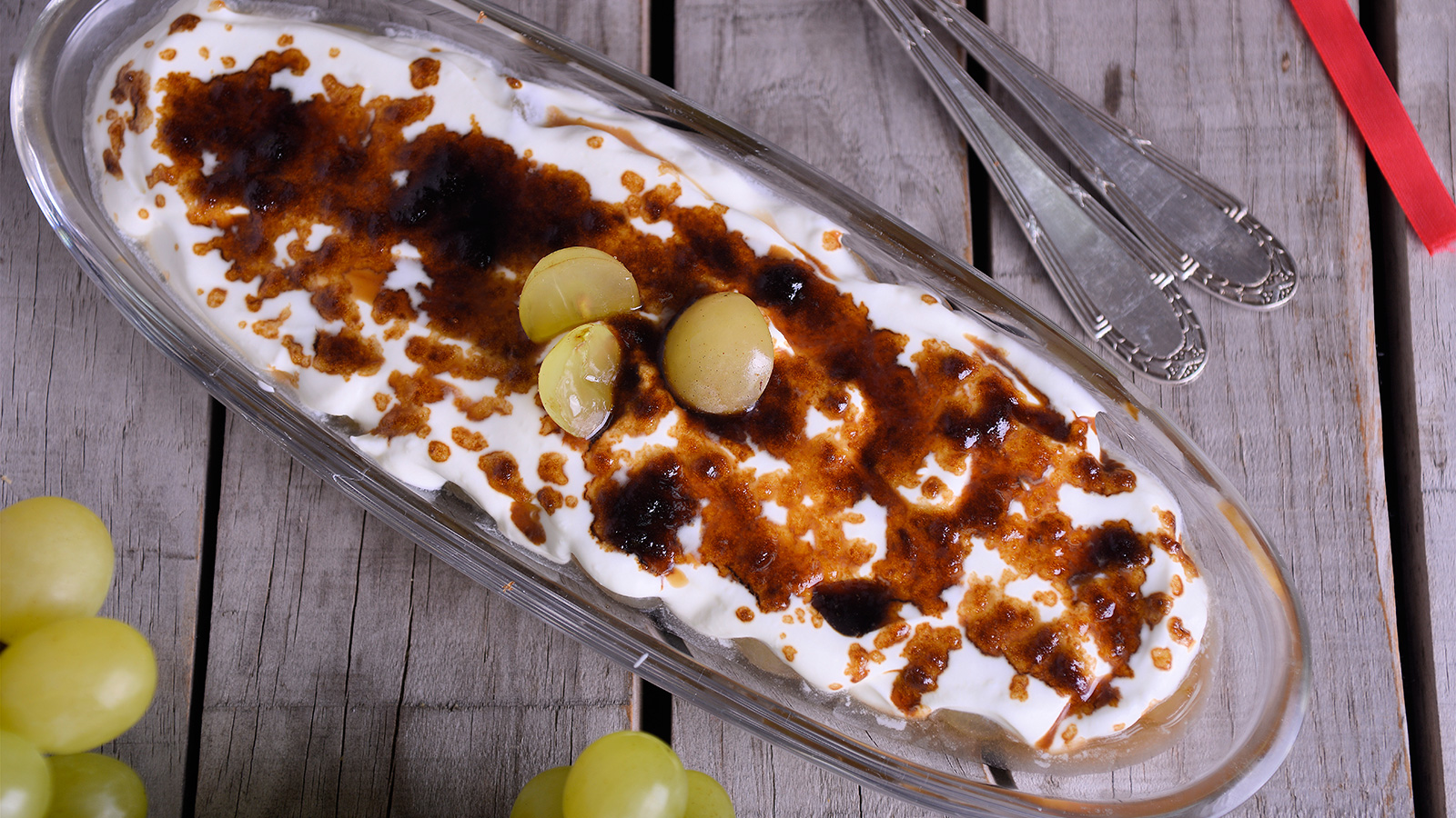 Gratinado de uvas con chantilly al vino blanco moscatel