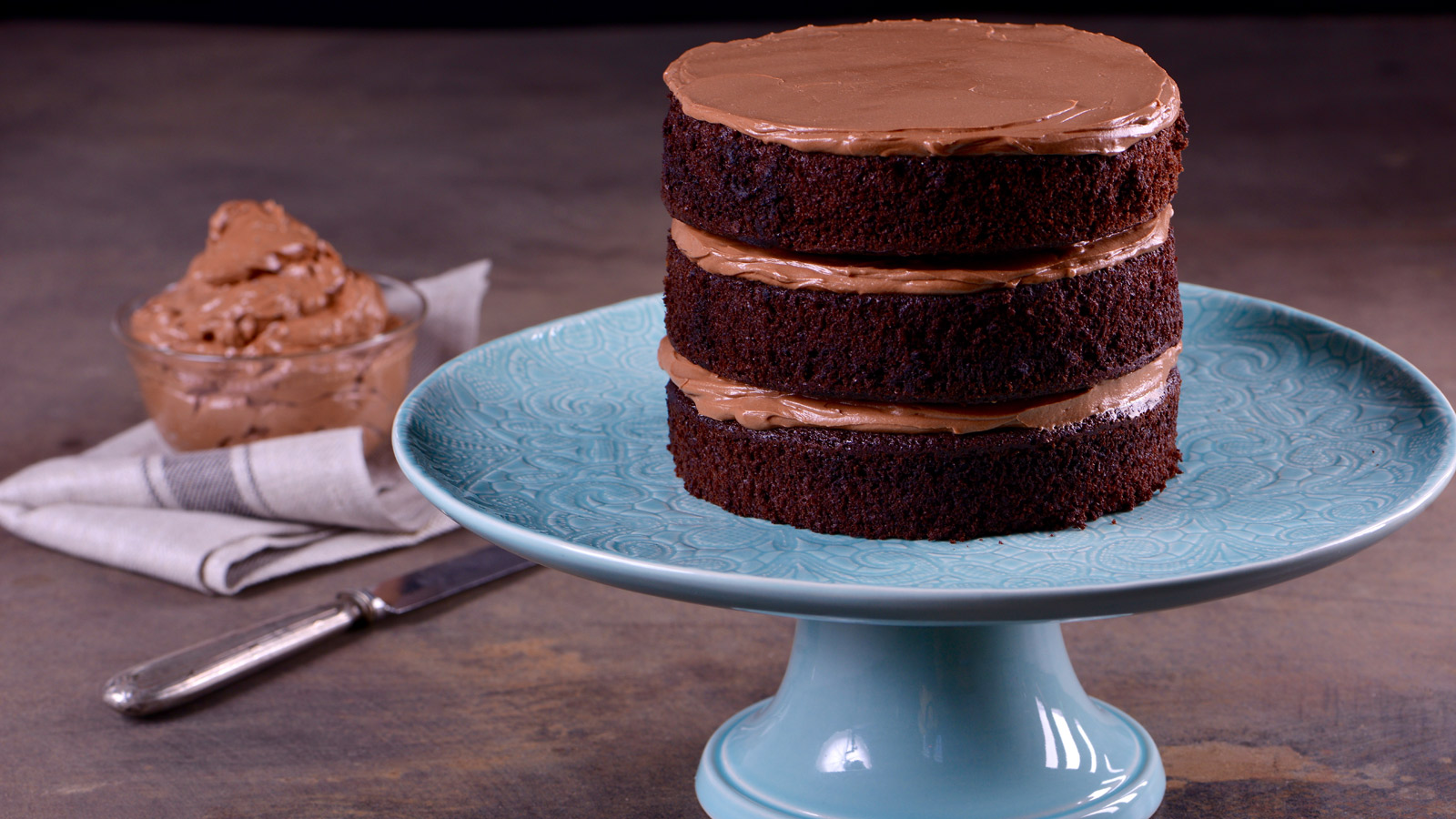 Montamos intercalando las capas de bizcocho y la crema de chocolate y terminamos con una capa de chocolate.