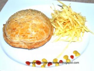 Hamburguesa hojaldra con queso de cabra y cebolla caramelizada