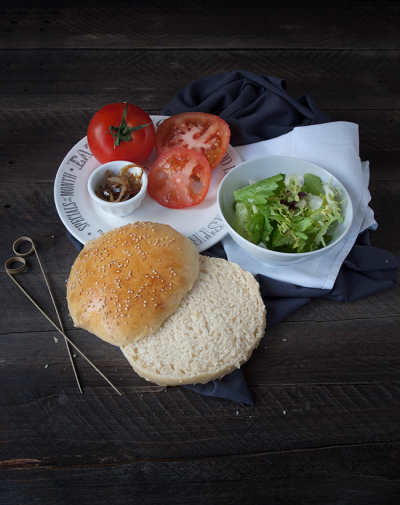 Participo en el concurso de Cocina Internacional. Las rectas que adapto son las de "Panecillos caseros de hamburguesa" y las "Hamburguesas con queso", ambas de Annie.¡Encuentra todo lo que necesitas para preparar esta receta en nuestra Tienda de Canal Cocina!