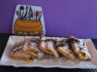 •Se aparta del fuego, se deja templar, se echa un poco de crema encima de la mitad de los rectángulos de placa de hojaldre y con la otra mitad se tapan y se cierran y se pintan con huevo las uniones.