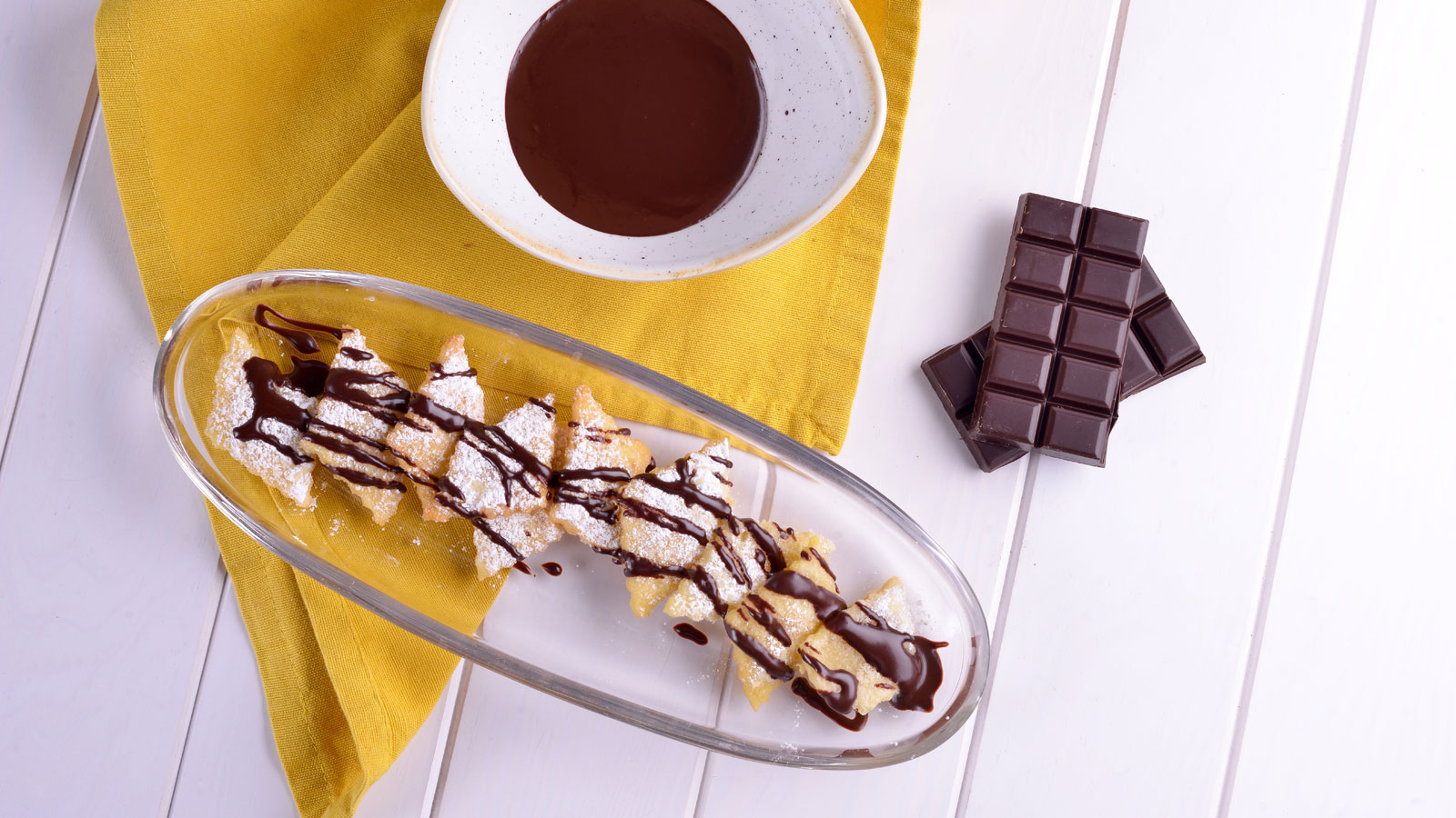 Servimos las hojuelas y acompañamos con la salsa de chocolate.